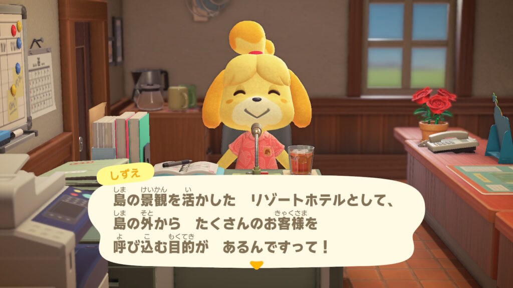 2020年3月20日(金)発売の『あつまれ どうぶつの森』の『Ver.3.0 無料アップデート』でホテルが建設されたのでちょっと触ってみる。