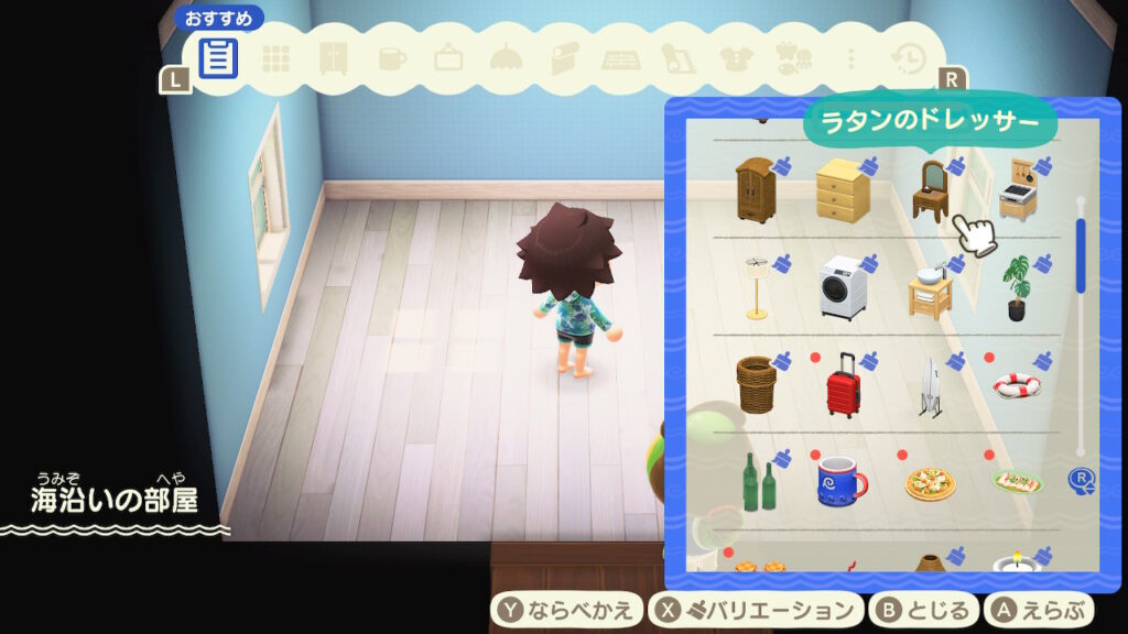 家具については、そのテーマに沿ったものが親切に表示されるので、