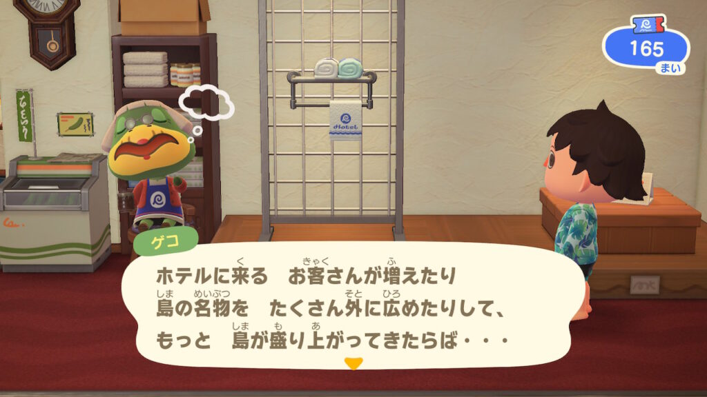 あとは、名物のやつをたくさん納品したり、ホテルの進捗状況?等々によって、