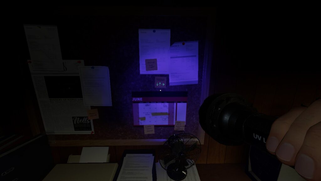 金庫の上にコルクボードがあるのですが、「紫外線(UVライト)」を使うと・・・。