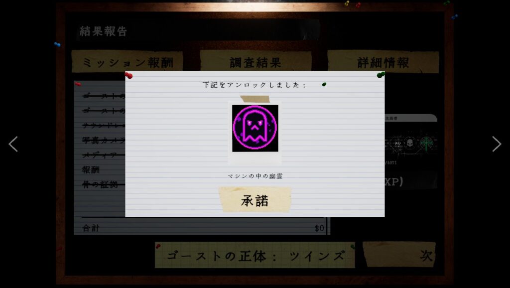 ゴーストの特定はわざと外しましたがアンロックされました。