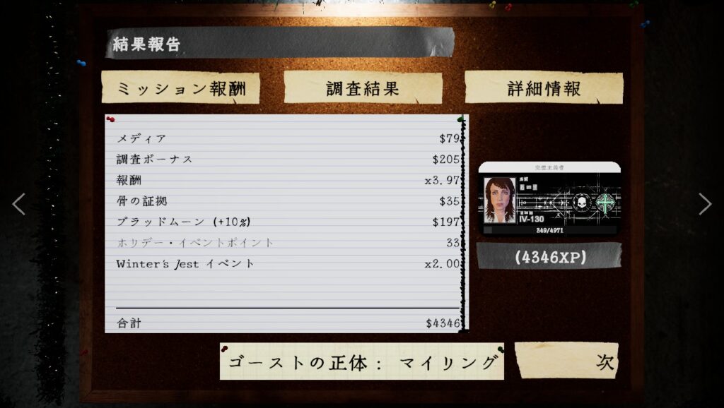 そして「イベントの最初の週である12月16日から12月23日まで、すべての調査で2倍の XPとマネーを獲得できます。」とのことなので、イベントを楽しみながら稼げますね・・・。