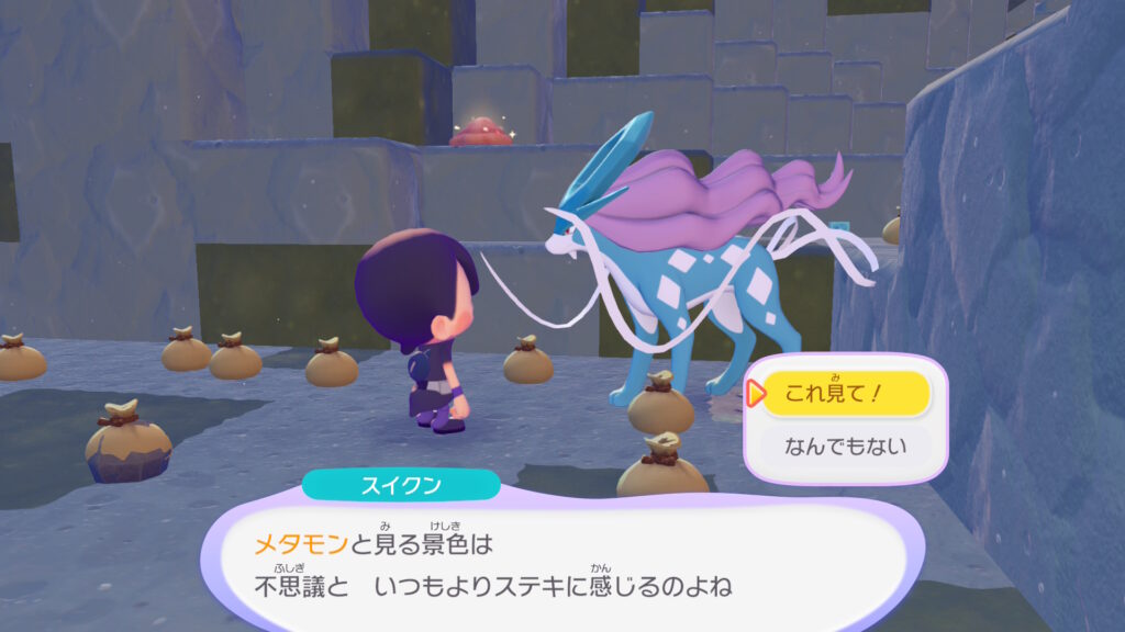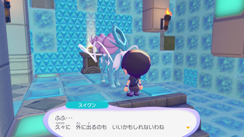 スイクンに会う以外にも、「ほしのすな」やおもちゃ、金色?黄色?のモンスターボールや赤いモンスターボール等も手に入るのでやれることいっぱい。