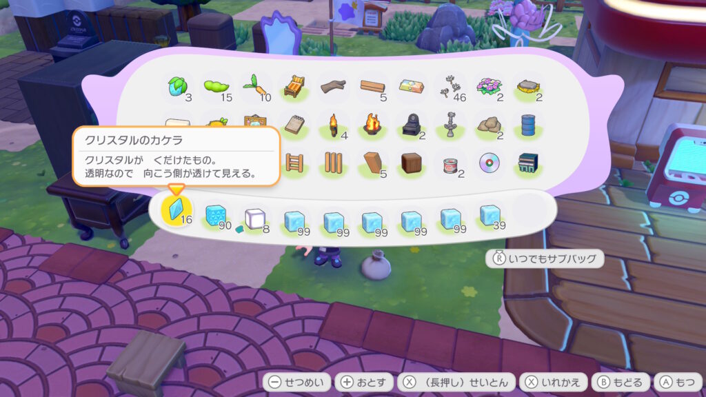ちなみに、クラフトで「ほしのすな」99個→「ほしのかけら」にできるらしい。