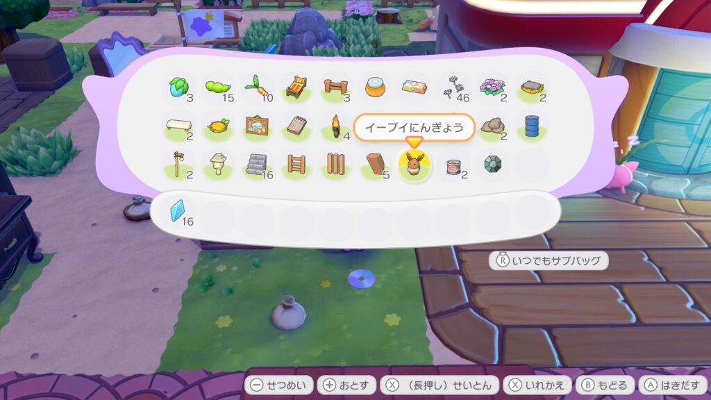 「イーブイにんぎょう」はパサパサ荒野の街のポケモンセンターに向かって右奥のブロックの向こう・・・