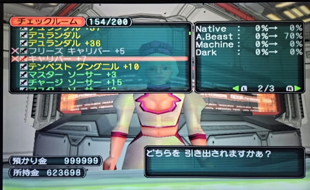 属性値の数字は左から「Native」「A.Beast」「Machine」「Dark」「Hit」