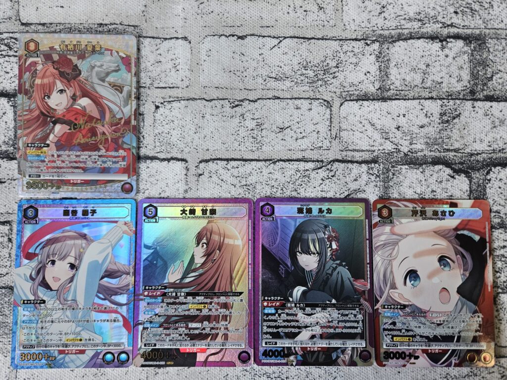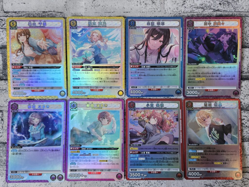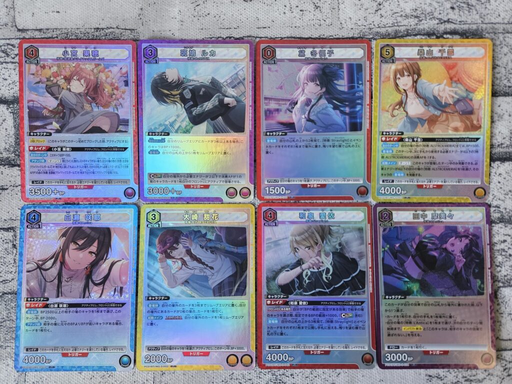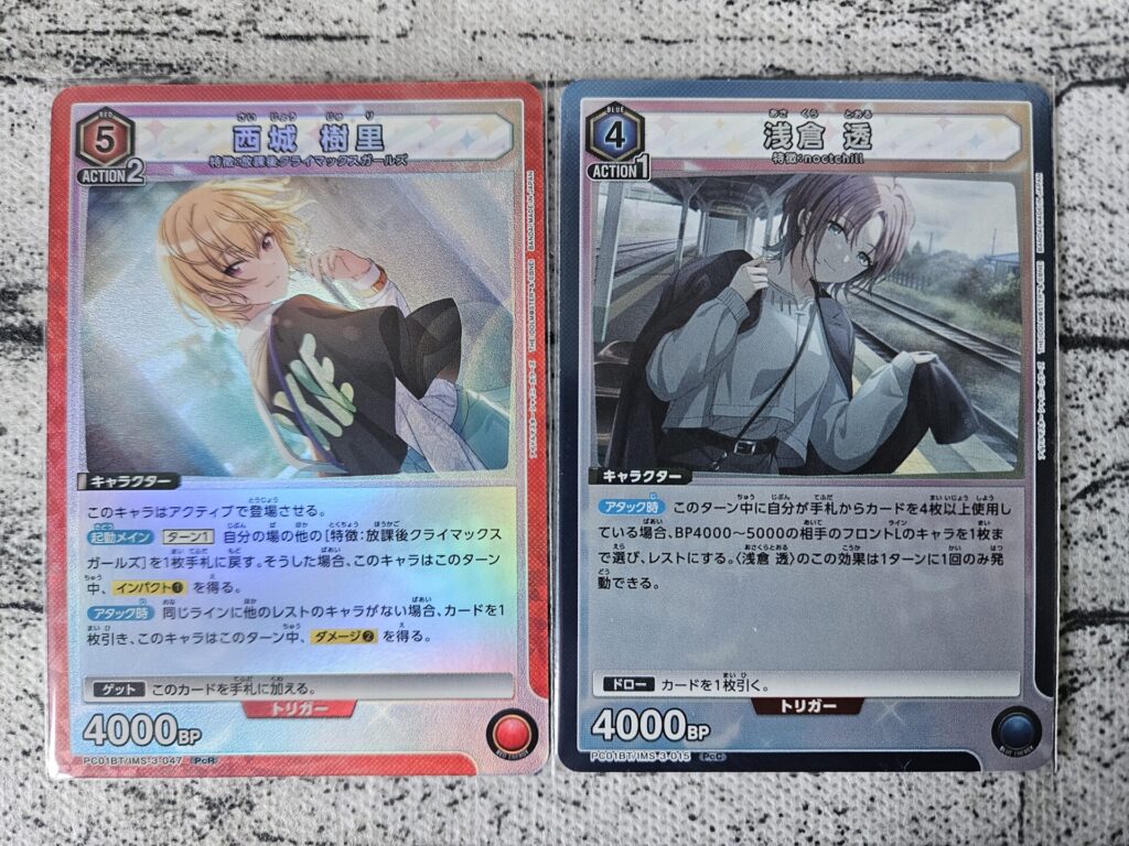 個人的な狙いとしてはPcR(プレシャスレア)のパラレル「西城 樹里」と、PcC(プレシャスコモン)のパラレル「浅倉 透」ですかね。