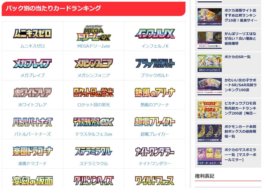 高額ランキング、過去発売のパック一覧など、初心者からコレクターまで満足できる網羅性なのではないでしょうか。