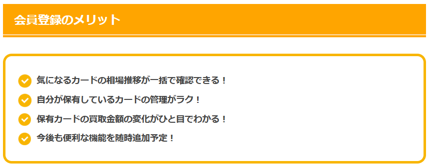 それぞれのカードの相場を毎回探さずとも、マイページに来るだけで登録カード分を一括して確認することが出来る、と( ..)φメモメモ